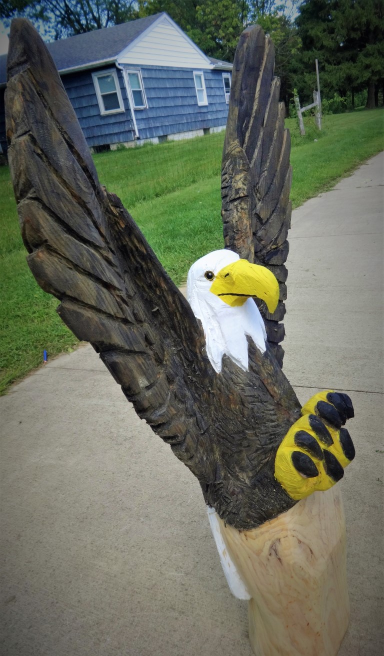 The artist behind Carvaholic is Peter Conley, an extremely talented master chainsaw artist located in central Ohio. His work speaks of his artistic talent and his attention to detail which naturally brings his carving to life. From the selection of wood, to the finishing touches of stain – his art work inspires and leaves you in amazement.