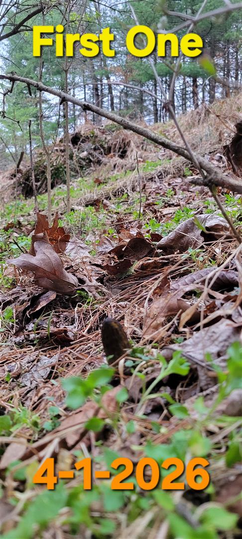 First of the season - On a South facing slope around slippery elms in a known spot of mine. The weather has been up and down with temp, kinda on the drier side as far as rain. Only one I found yet. About the size of a lighter.