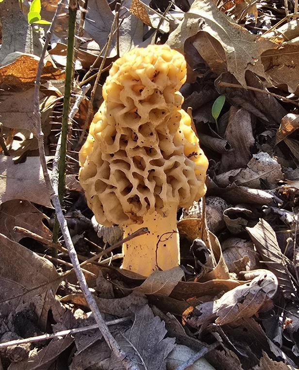 Morel 2026 April 4th - Oak trees on hillside facing north. About 3 inches tall blonde. Found 4 total.