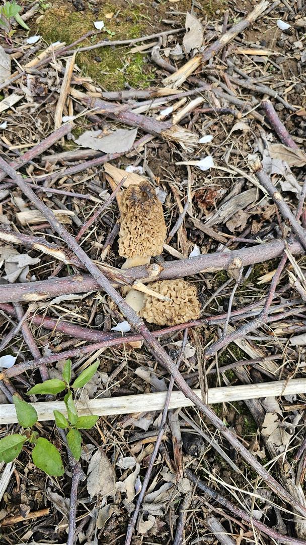 Scouted a very large orchard (Private property) over 10 times for these 12. Basically all found within 1 lane. Definitely a low spot, but level ground. Lots of sticks and dry leaves around. Trees were about mid maturity. Haven't found any morels under the old big trees or the younger saplings. Couple solid blondies here but found even more dried ones that weren't edible. Rough year so far.