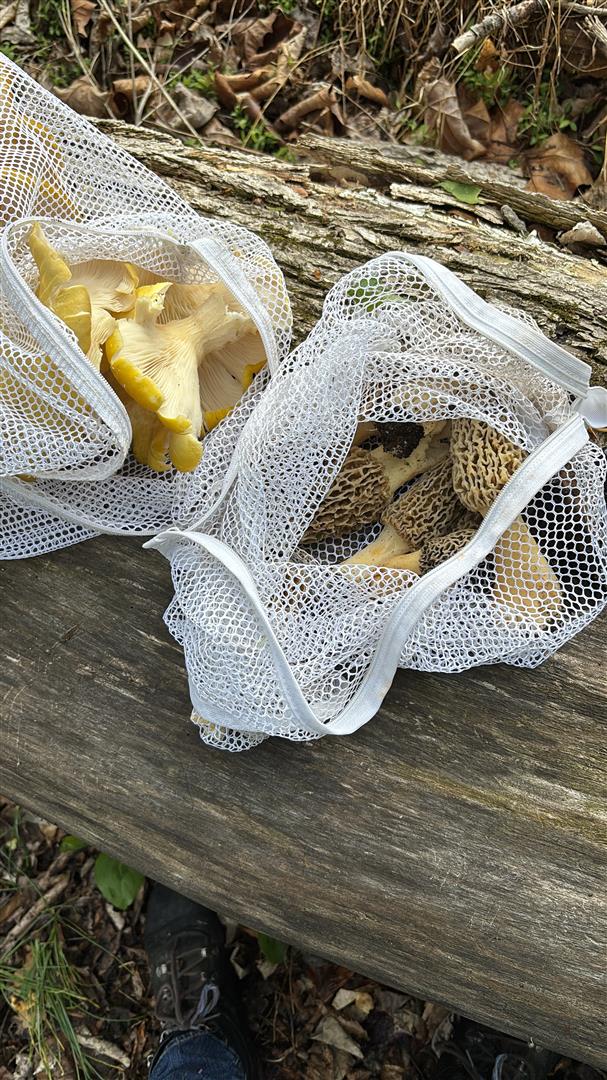Shenks Ferry, - Beautiful brisk day after the rain last night. Found about a dozen medium size Morels & a nice log of Golden Oyster mushrooms today. Made Cream of Morel!!!