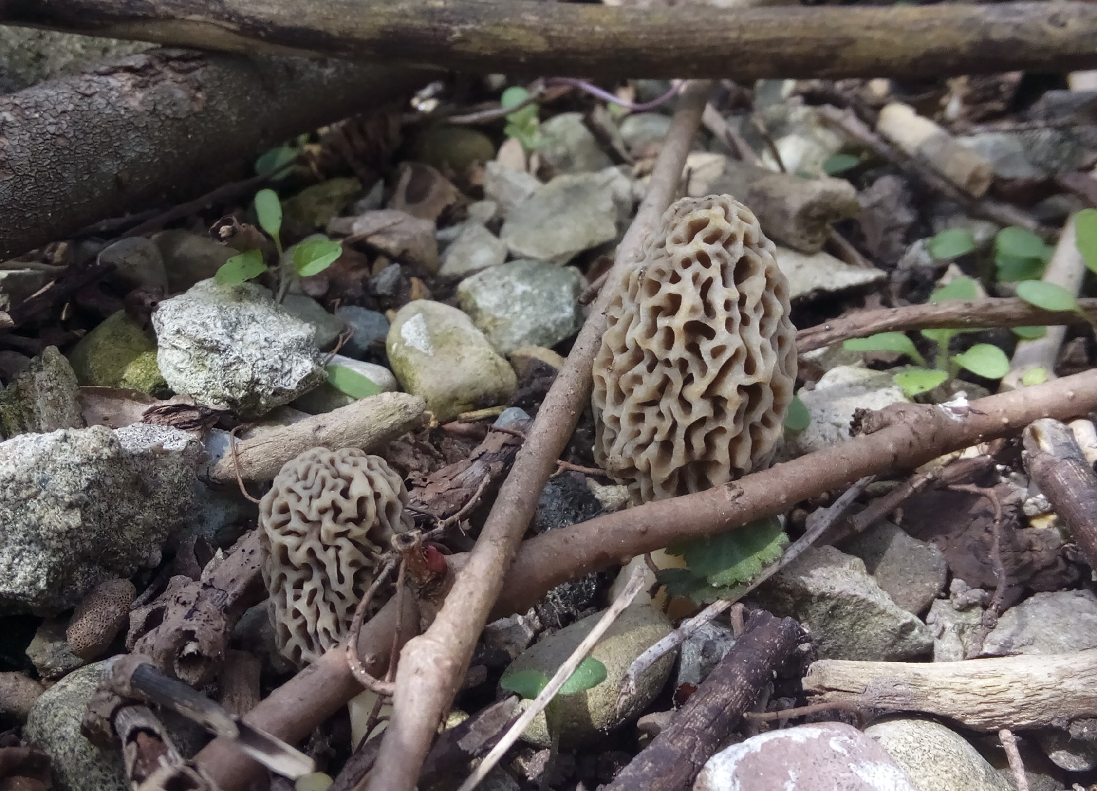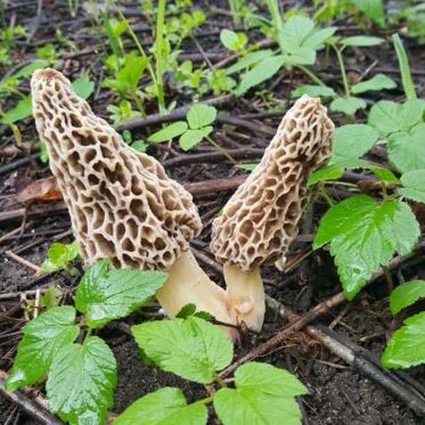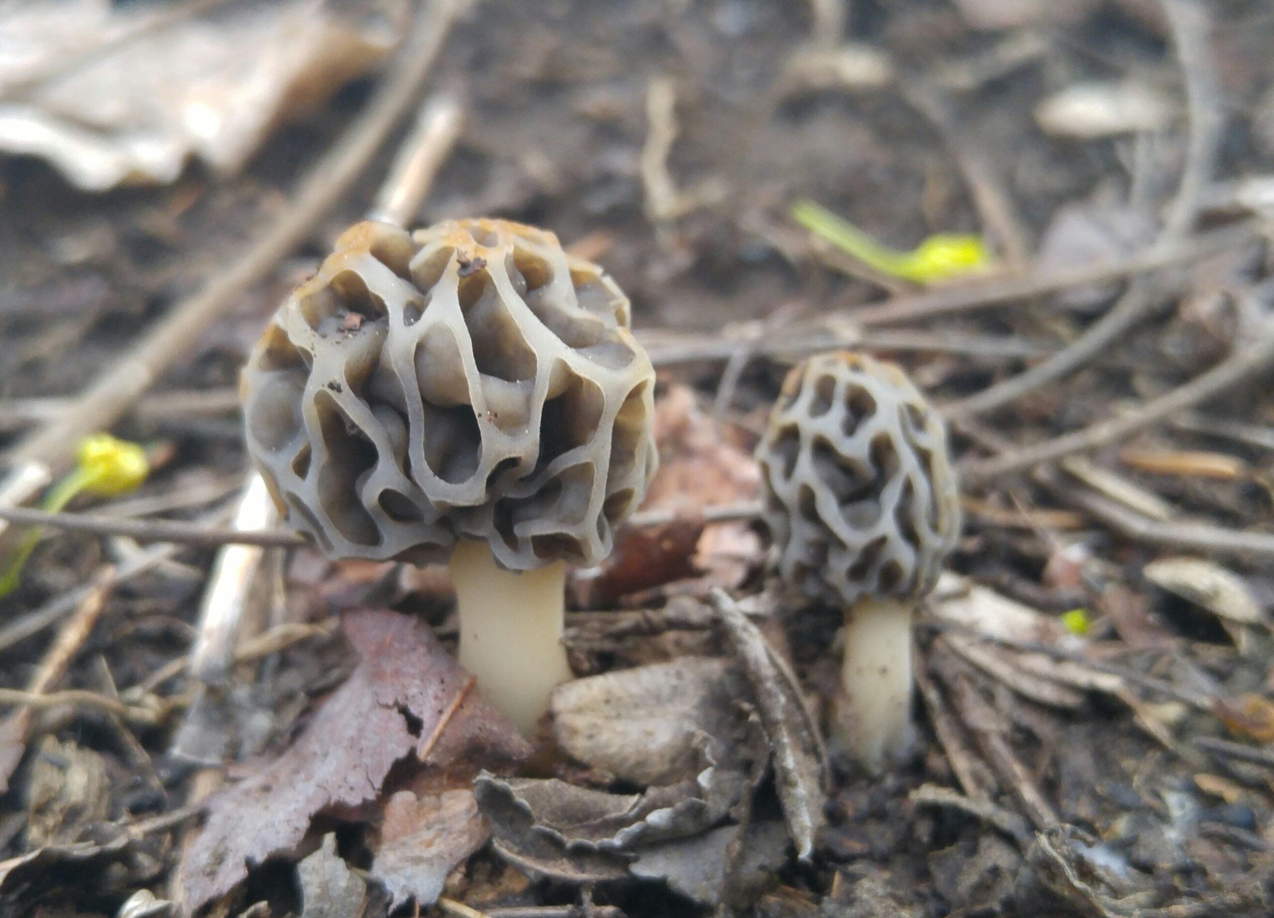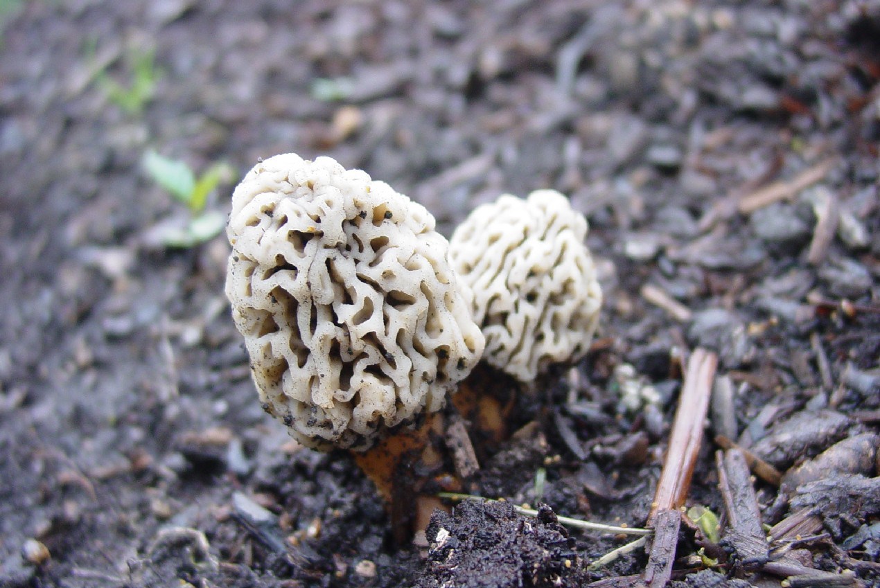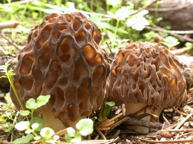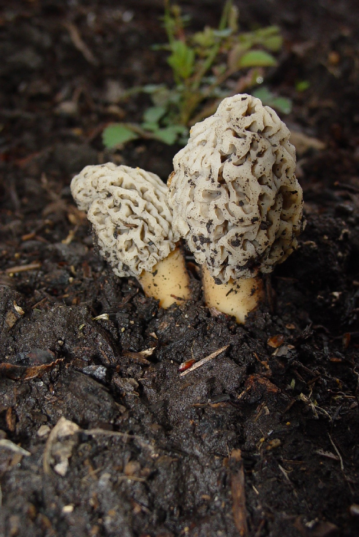 Twin grey Morels