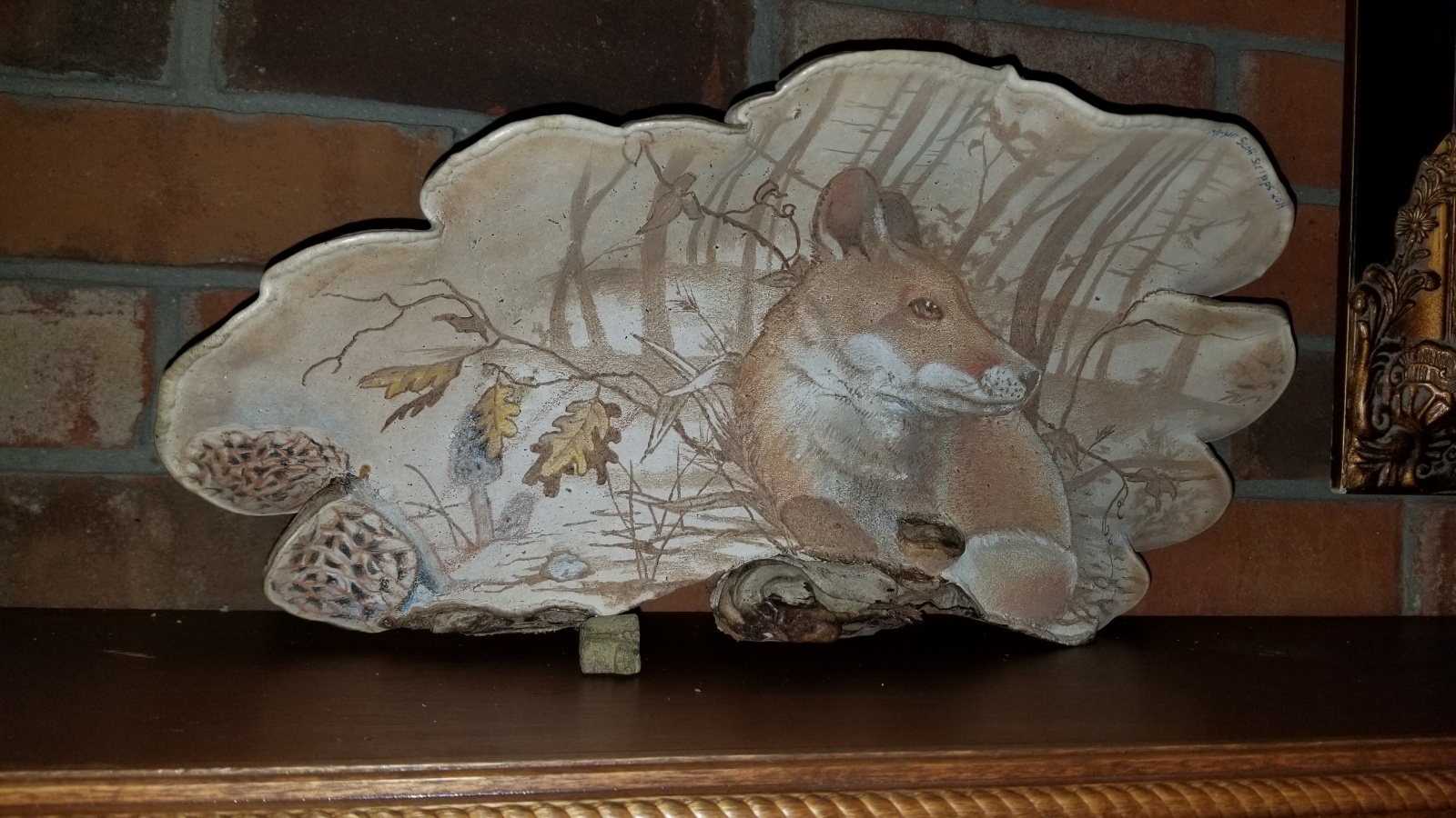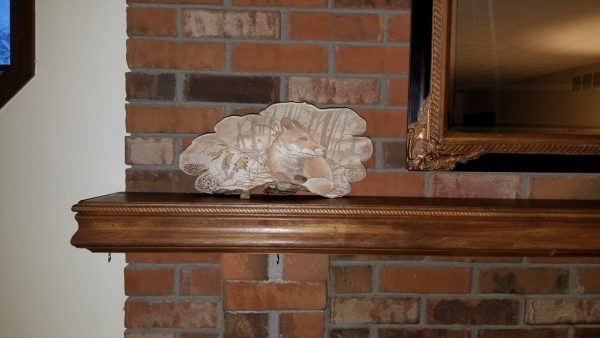 This is an Artist’s Conk Mushroom ( Ganoderma applanatum) that’s been etched and hand drawn. It is a fox hiding in the under brush with morel’s nearby. The top half of the mushroom is folded over almost providing cover to the fox. The artist conk used as the canvas for this piece was found by Megan while foraging edible mushrooms. This original piece is 15 inches wide by 7 inches tall and is truly as beautiful as it is unique.